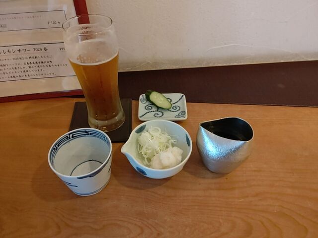 №645-03 2024年08月 ●ランチ。単品。中生ビール700+蕎麦(辛味大根おろし1330(大盛500)