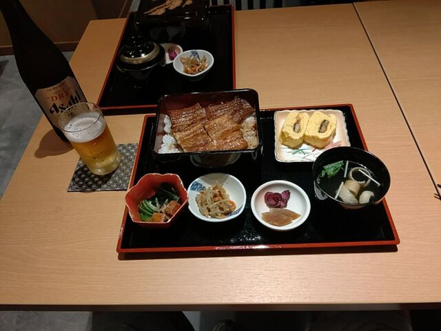 №1186-01 2025年07月 ●夕食。中瓶B 650X3+黒霧お湯割650+特製うな重(鰻6切)5400