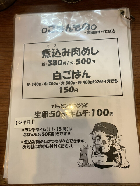 ごはんは特大まで同じ値段なのが嬉しいポイントです