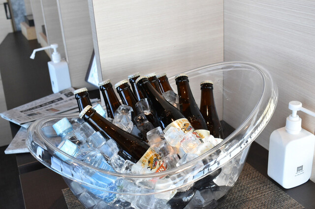 ソフトドリンク、ビール、シャンパン、ワイン等がフリードリンク。