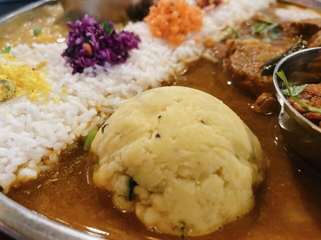 味が幾重にも変化し、出汁の旨みとスパイスが溶け合い、和とインドが静かに握手したような奥行きを感じる。