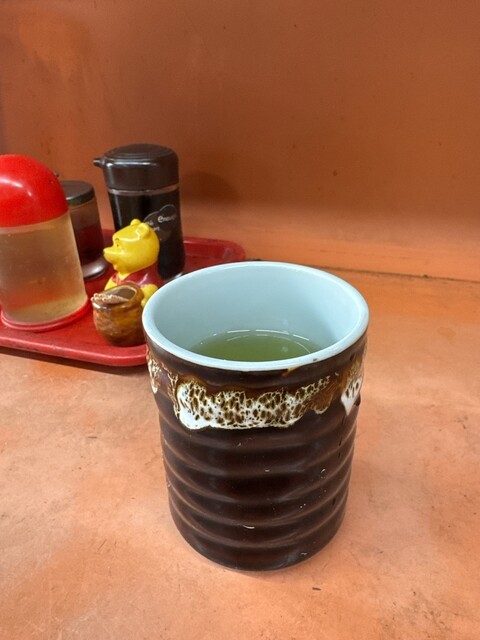 餃子を焼きながら、温かい緑茶、大根の浅漬けを配膳。
