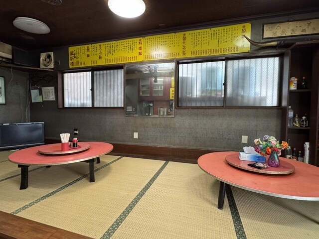 右には丸テーブルの座敷席。