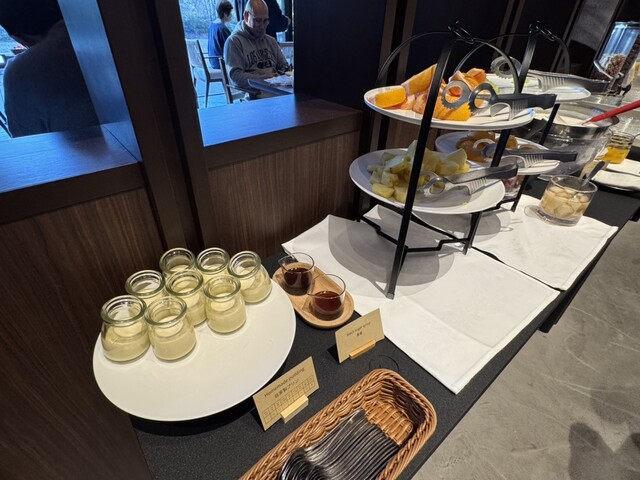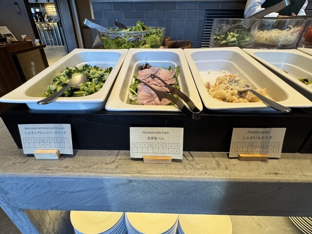 ベーコン、スクランブルエッグ、富岳白鶏ソーセージ、銀鮭のクリーム煮なども上質で美味しい。