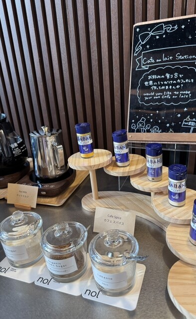 中でも、お好みのカフェスパイスやシュガー、ミルクなどを組み合わせて自分好みのカフェオレが作れるのは嬉しい。