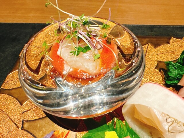 ・羽衣鮨(木更津サーモン、木の芽、天子卵)