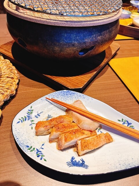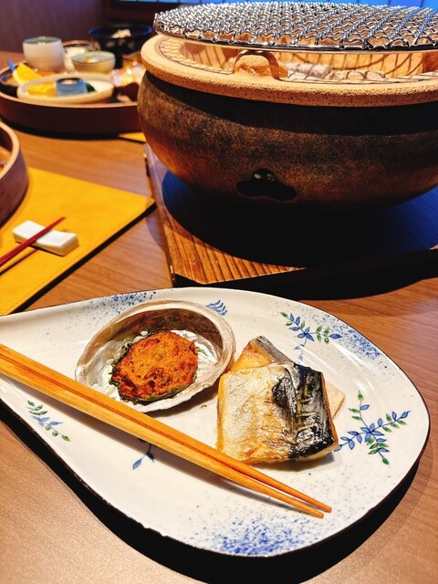 炭火の焼き物は、鰆、鮭、チャンジャ焼き、そして豚と鶏。