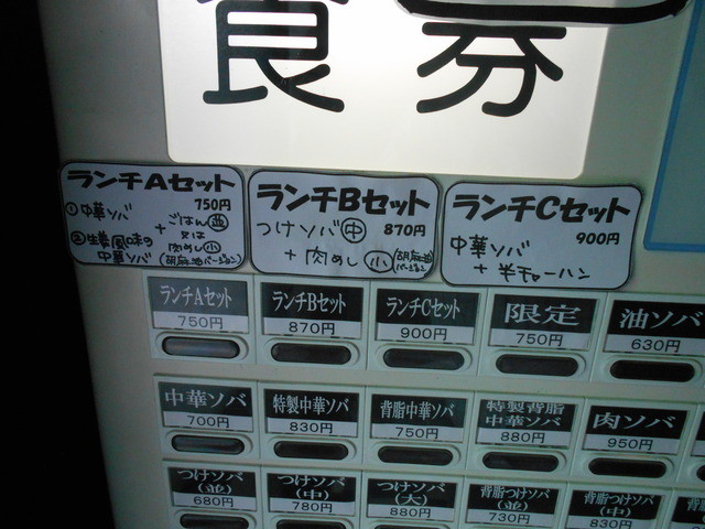 自分は入り口の立て看板で確認したランチCセット900円(中華そば+半炒飯)のボタンをポチッとします