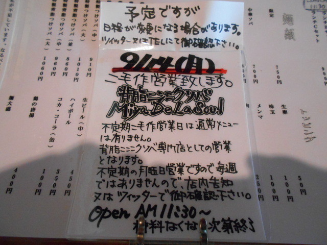 メニューに刺さって居たのですが不定期の月曜に背油にんにくラーメンを提供しているそうなので
