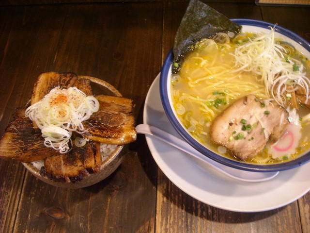 来る前からレビュー読んで決めて居た海老塩ラーメンと炙りチャーシュー丼醤油味をポチッと