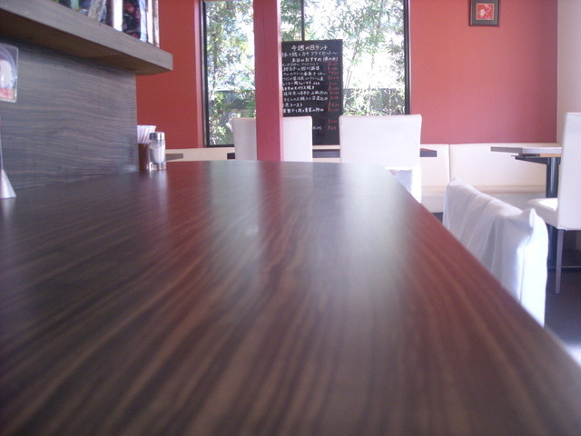 左側にカウンター席4人か5人座れそうです と4人掛けテーブル席が2卓と2人掛けテーブル席が1卓