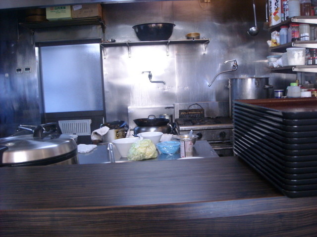さて坦々麺を食べて居ると奥で炒飯の調理が始まりマスターが鍋を振ってます