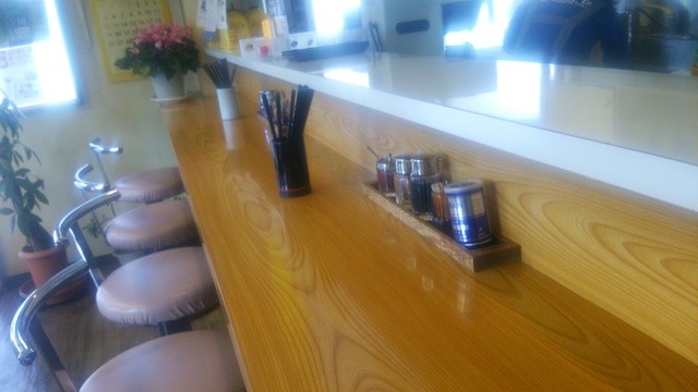 カウンターからは厨房が見えますが こちら側だと麺茹で器とスープの寸胴しか見えません