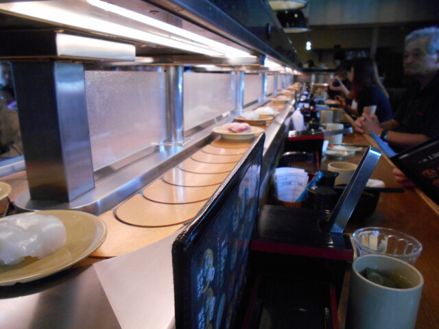殆んどの人は回って居る物よりも注文したものが来るのを待って食べて居ます