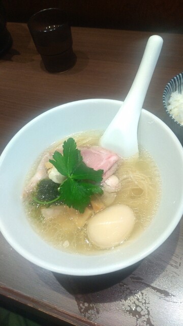 煮干し白は煮干し感はあまり無くスッキリとしていますが奥深い出汁の味わい!そしてこの蕎麦のような麺とスープの一体感が堪らなく旨い1品です。素晴らしいです。