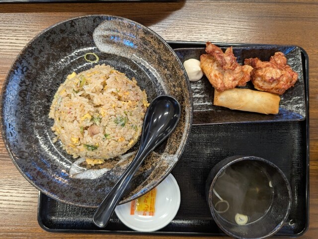 連れの定番炒飯と唐揚げ春巻きセット