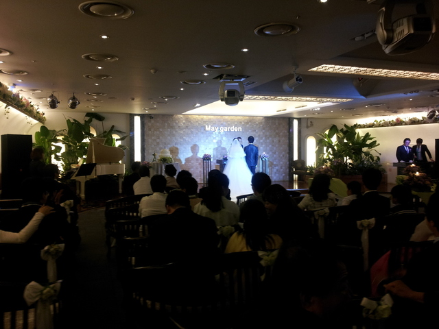 韓国では、式場でチャペルのようなホールで式を挙げ、親族以外でも入れるだけ