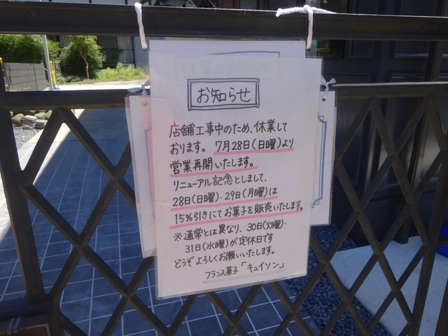 キュイソンが7月28日に営業再開します♪ (2019/07/27)
