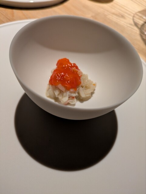 パエリア Paella (加能蟹) コースの〆のお食事です。11月解禁の加能蟹の旨味が、お米にしっかりと染み込んだ、濃厚でコクのあるパエリアですが、やはり他の料理と比較して、これは突き抜けて好き。おかわりは焦げの部分で。なんだかんだと食べ応えある。