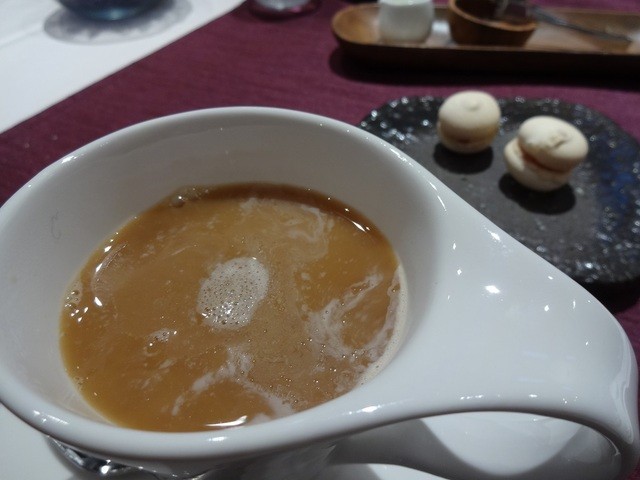 最後は珈琲。口直しにイチジクのジャムをマカロンではさんだのをいただきました。