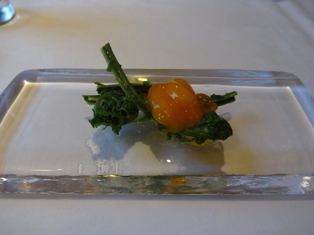・こごみ+生ハムに包んで塩味をつけた卵黄(生ハムは付いてないのがすごい?)