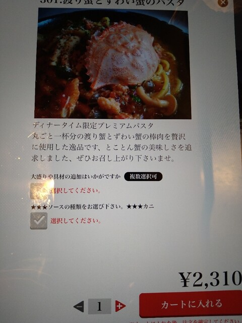 渡り蟹とずわい蟹キノコの逸品パスタ