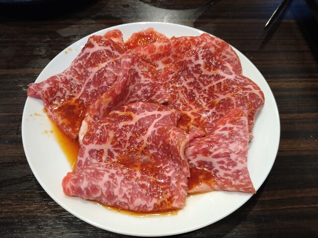 再訪。近江牛が、メニューからなくなってたが、普通肉で十分うまいので、今回は、タン・ほそ・ハラミ・赤身・白菜キムチ・トマトキムチ・グリーサラダ・上ロース・上カルビ 4人でも一人前ずつで十分。締めに牛すじラーメンと冷麺をいただき完璧だ。