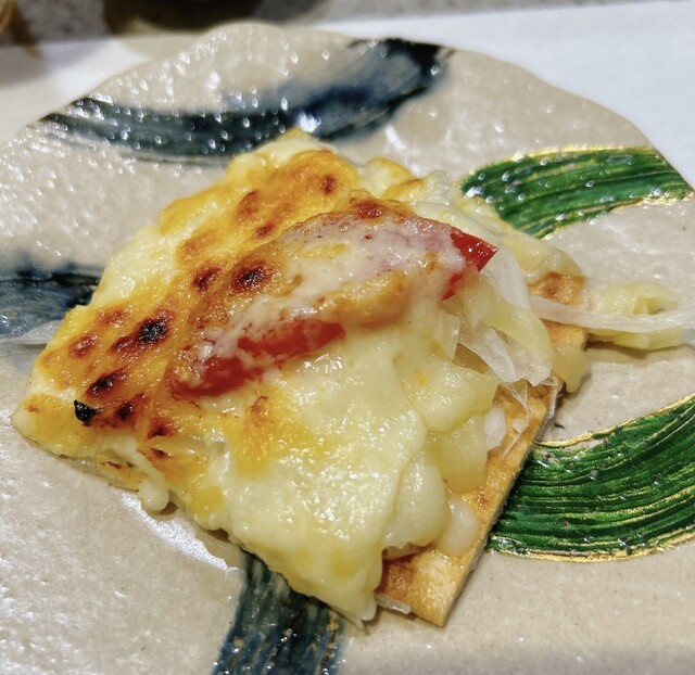 タルト生地に、パパイヤ、エビ、赤パプリカがトッピングされていて、女将さん情報ではベースに豆乳とごま油も使われているそうです!