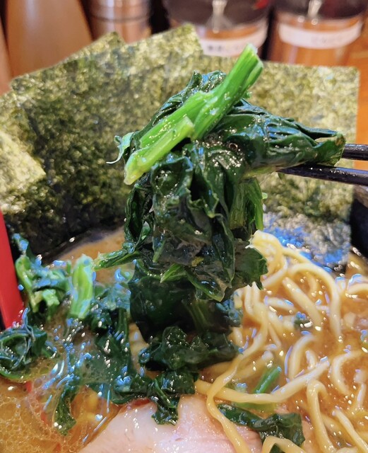 ラーメン、ほうれん草リフト!