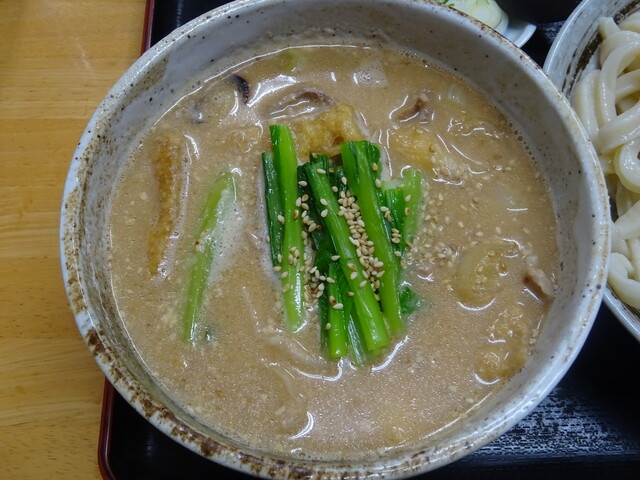 いつもは肉汁うどんか、ピリ辛肉汁うどんで迷うのですが、今回は、まだ食べたことのないメニューも食べてみたくなり、ゴマ肉汁うどん 大(970円)にしてみました。