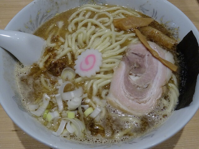 いただきましたのは、太麺、濃厚魚介豚骨、魚粉の元祖つけめん。量は大。