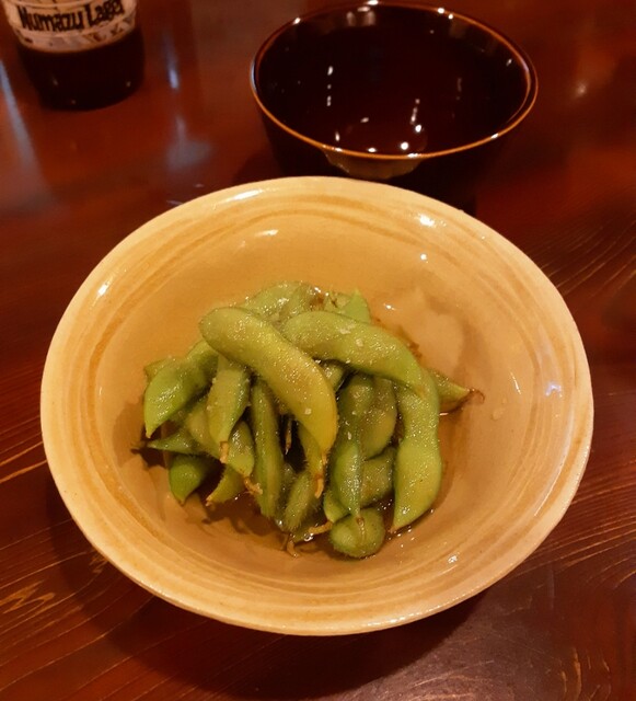 枝豆の出汁浸しと鴨ロースをお願いする。