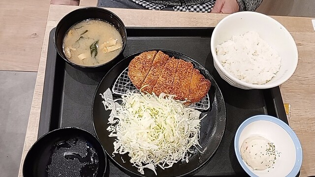 アプリ割引ロースカツ牡蠣フライ定食+松屋単品おかず「鬼おろし」