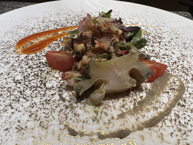 ◆瞬間燻製した鰤、ホタテのミキュイ