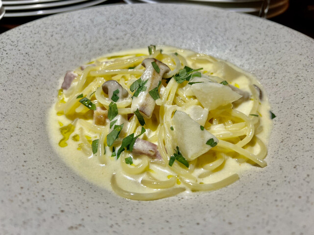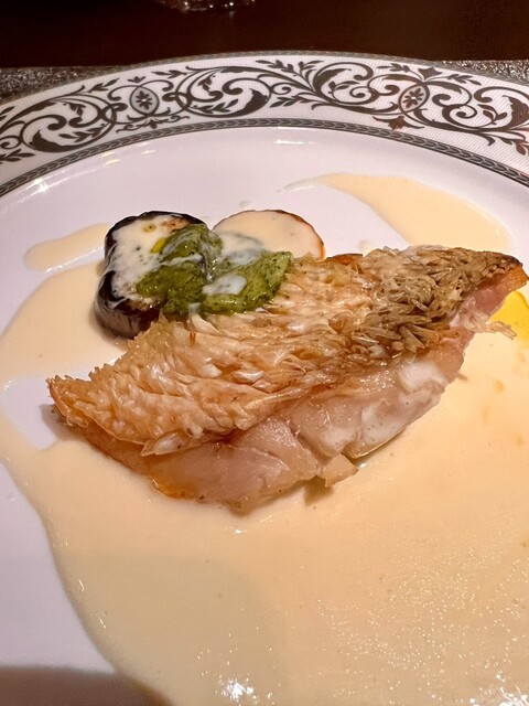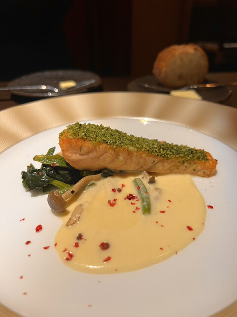 (脂の乗った鰆をハーブを効かせたクリームソースでどうぞ)