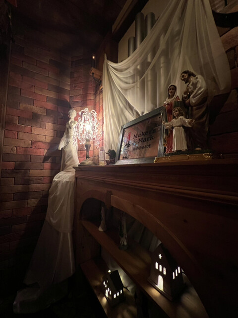 大人の秘密基地の様なこじんまりとした店内は間接照明の温かな灯りや素敵なオブジェが教会の屋根裏のイメージに合っていて雰囲気も良いです❤︎