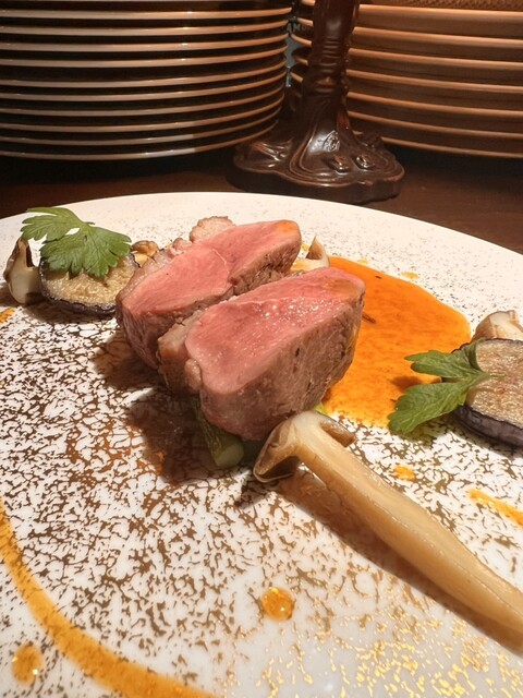 (丁寧に火入れした鴨肉をフレッシュなオレンジのソースでどうぞ)