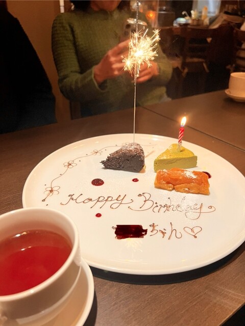 最後はお誕生日プレートでケーキと一緒に花火がパチパチ〜♬♬