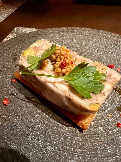 (豚肉と鶏レバーを混ぜ合わせて焼き上げた田舎風パテ)