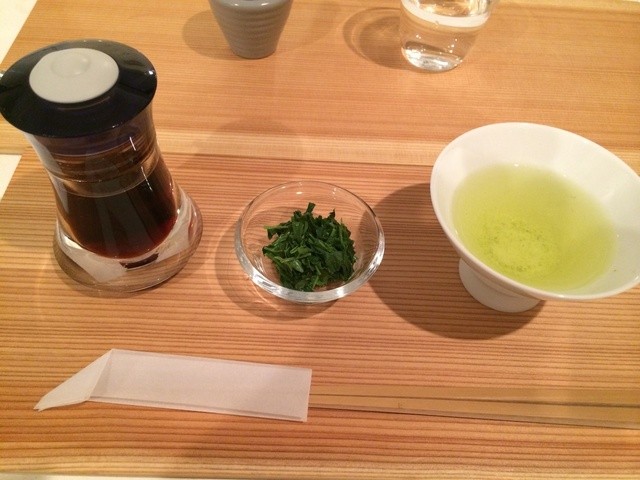 最初に檜の香りのアロマを染み込ませたお絞りとお冷が出されます。