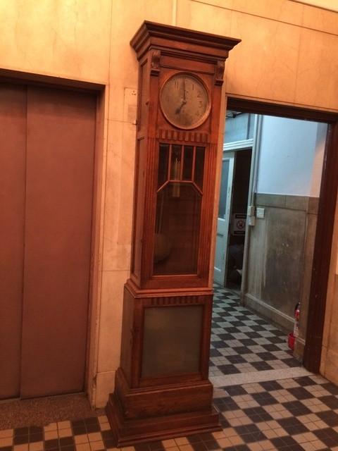 レトロなビルの大きな柱時計の横のエレベーターに乗って二階へ。