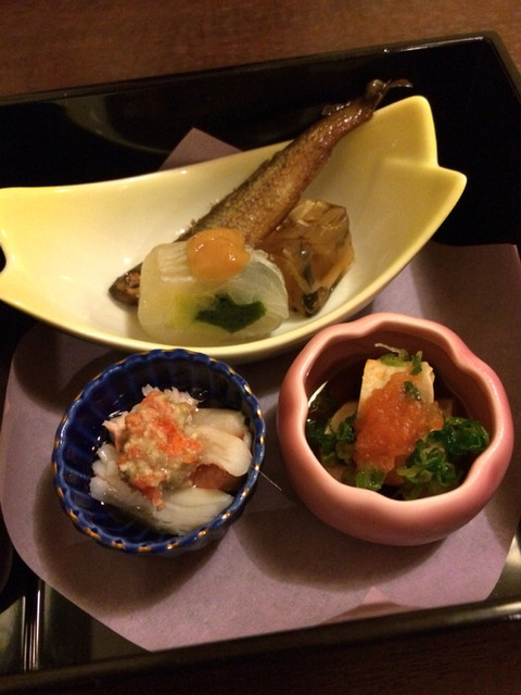 カニ身やあん肝などどれも素晴らしく美味しい小鉢にこの後のお料理の期待が高まります❤︎