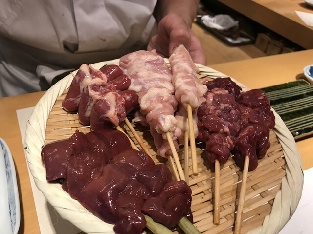 スタッフさんが焼く前の串焼きを笊に乗せて私達の目の前に持ってきて産地の説明もしっかりとしてくれました。