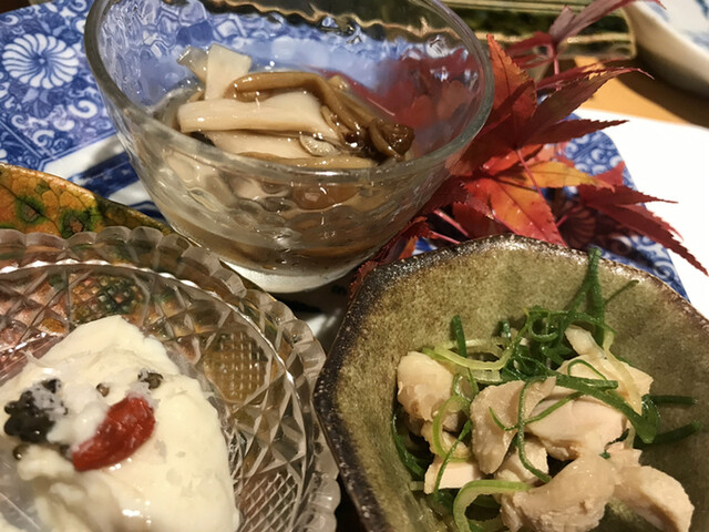 きのこのお浸し・ひね皮ぽん酢・おぼろ豆腐