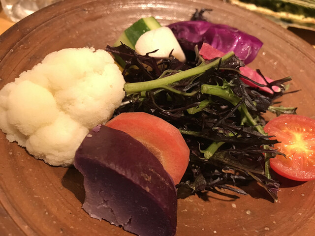 箸休めとして出されがちな野菜は種類も多くて色鮮やか。