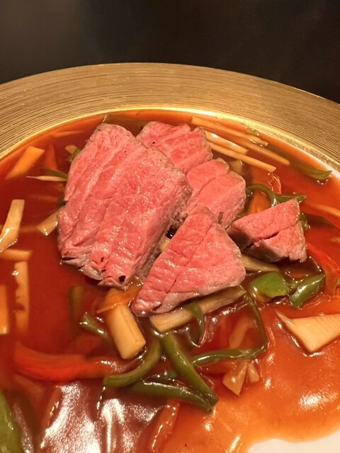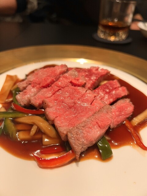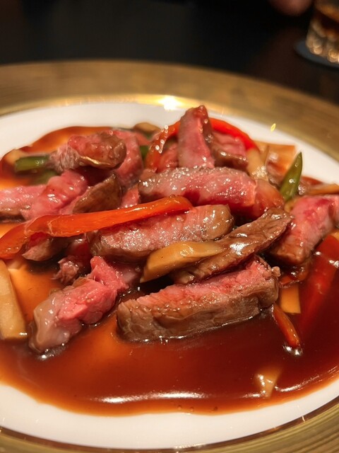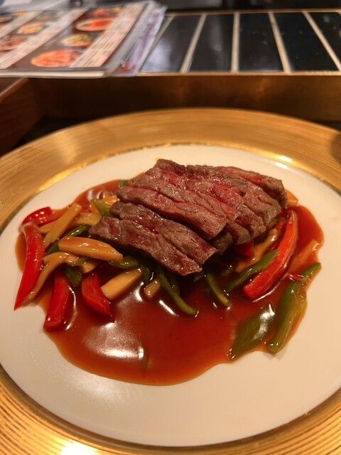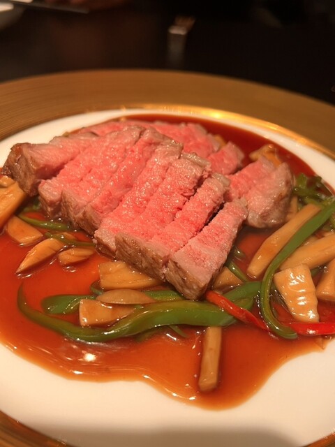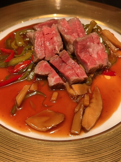 サーロインを使った贅沢な青椒肉糸は柔らかなお肉とピーマンのシャキシャキ食感が美味しいです♡