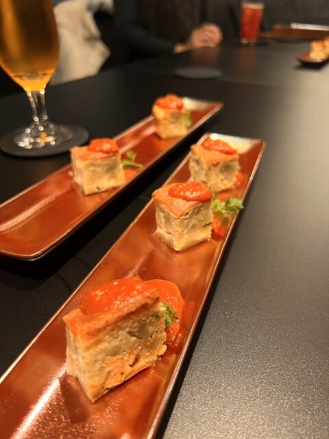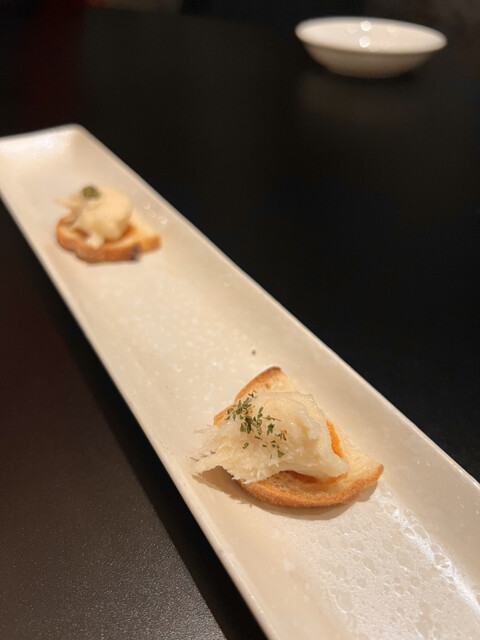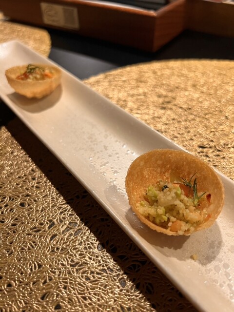 アミューズの鱈のブランダードは手で摘んでサクッといただきます♡
