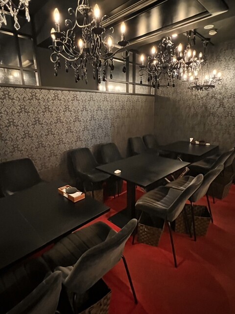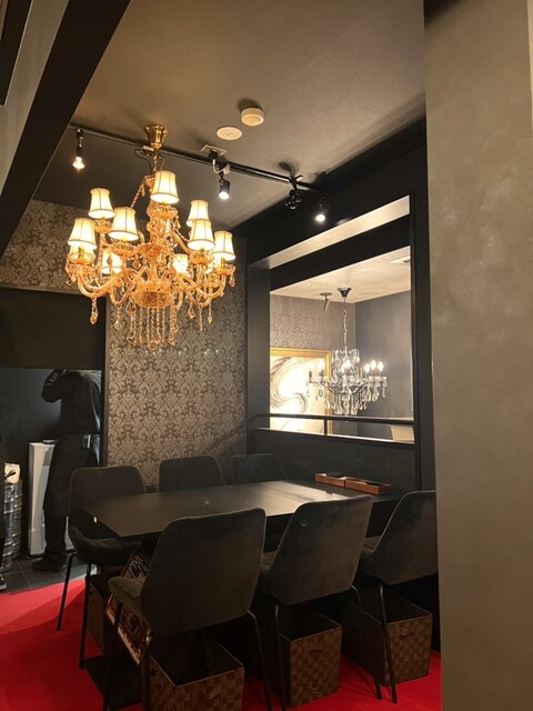 1階は窓側にテーブル席が一卓とライブ感が味わえるオープンキッチンのカウンター席があり、2階フロアは煌びやかなシャンデリアが並ぶラグジュアリーな空間で半個室もあります♥