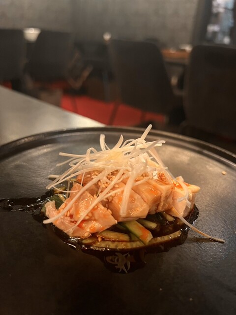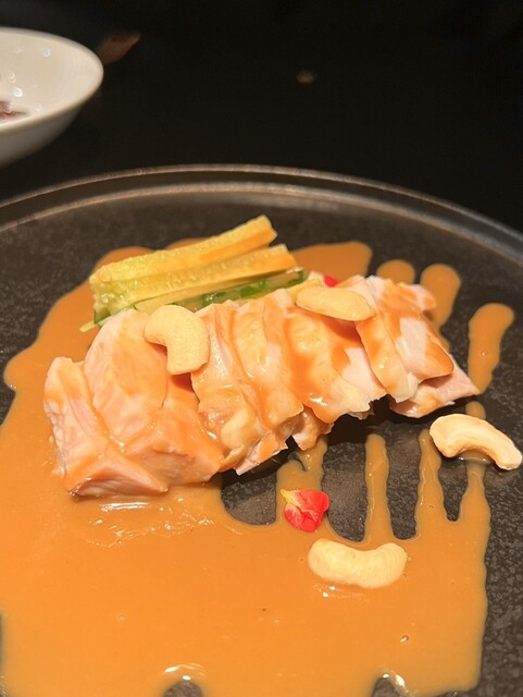 蒸し鶏胡麻ソースには紹興酒が合う〜(〃ω〃)