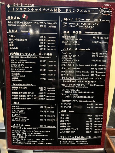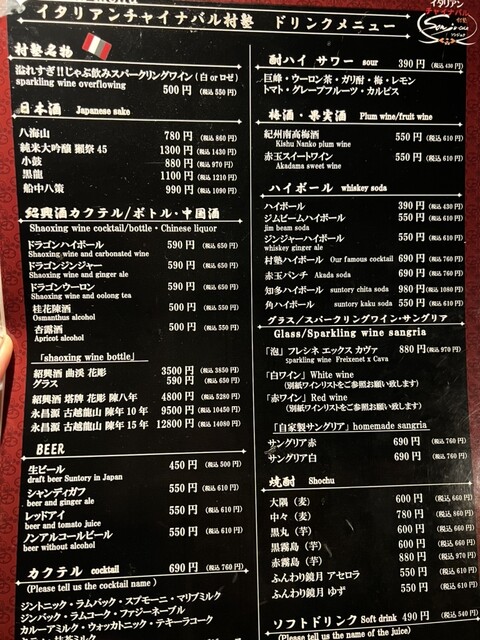 土日祝は14時からオープンの裏なんば、道具屋筋横丁にある【イタリアン チャイナバル村塾】さんでの昼飲みタイム♬